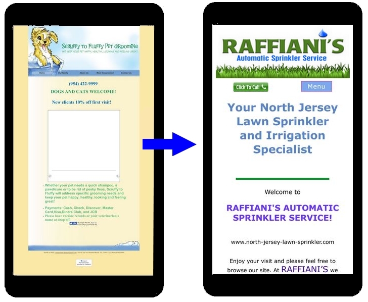 Not having any idea what this means or why it is SO important! | Work with a knowledgeable Internet Marketing expert like Searchlight Business Advocates now! With over 60% of YOUR market using a SmartPhone for virtually everything these days, you must be absolutely sure that YOUR site looks and functions like the RIGHT-hand image in our illustration and not like the LEFT! |